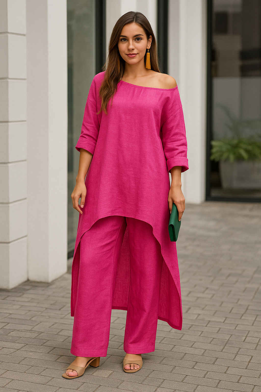 This set brings together a chic design with the comfort of cotton and linen. It’s perfect for those who want to look stylish without sacrificing comfort. Enjoy a wardrobe staple that's both versatile and flattering, no matter your body type.